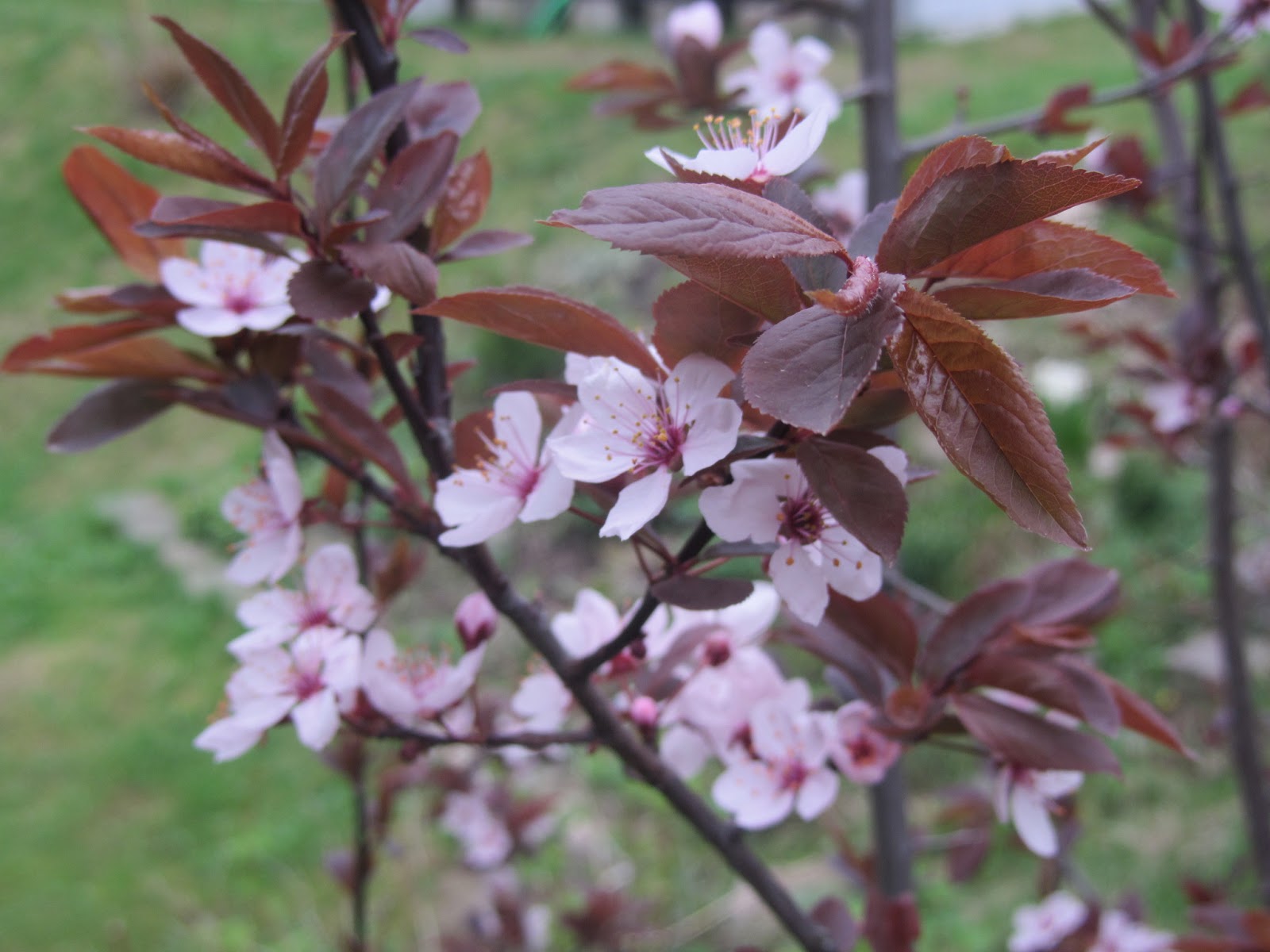 Die Blutpflaume muss ich immer schneiden, damit sie nicht zu groß wird, womit sie natürlich ihren ursprünglichen Charakter verliert. Aber die Nachbarn haben den Strauch in wahrer Größe, ein Vogelparadies….