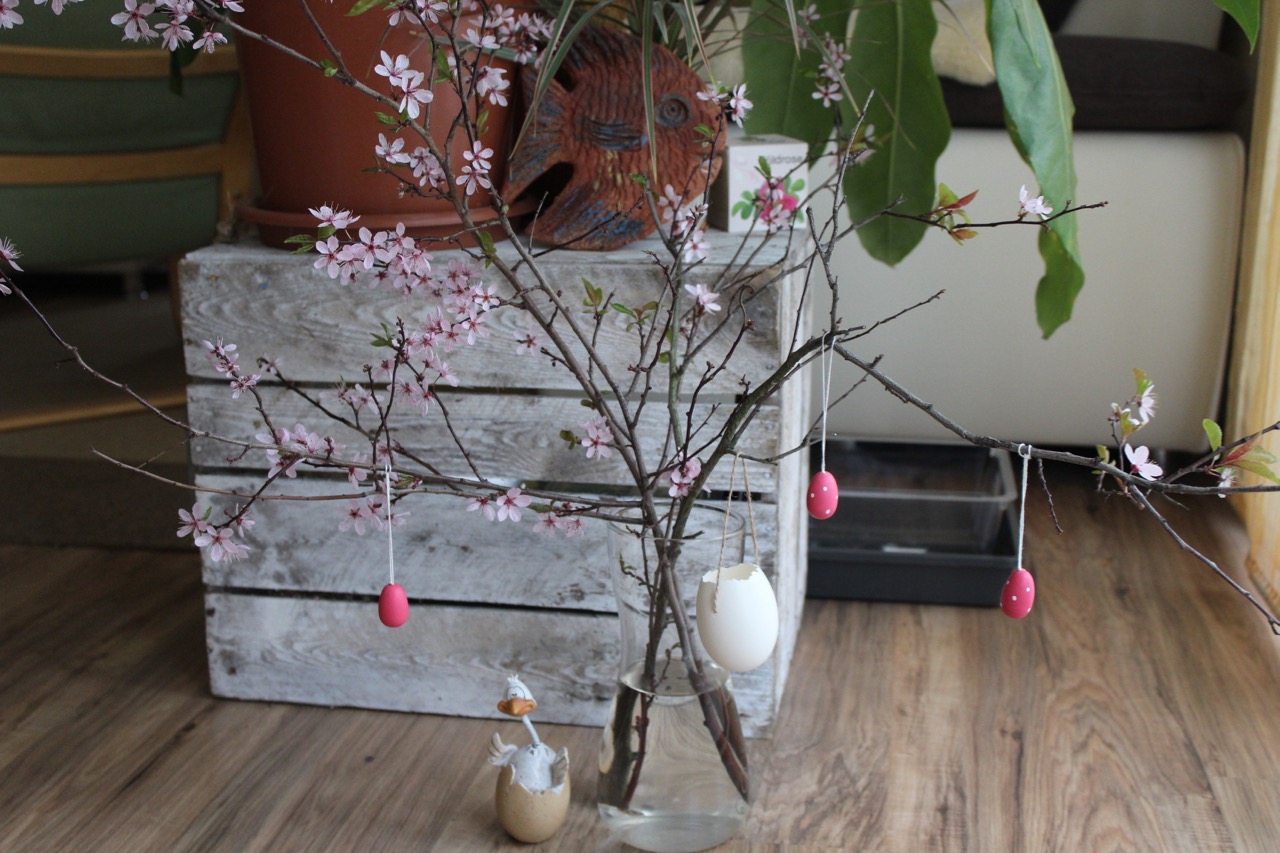 die rosa pflaumenblüten sind wirklich hübsch! bei mir gibts "schnöde" forsythien – mit ein bisschen süsskirsche 🙂