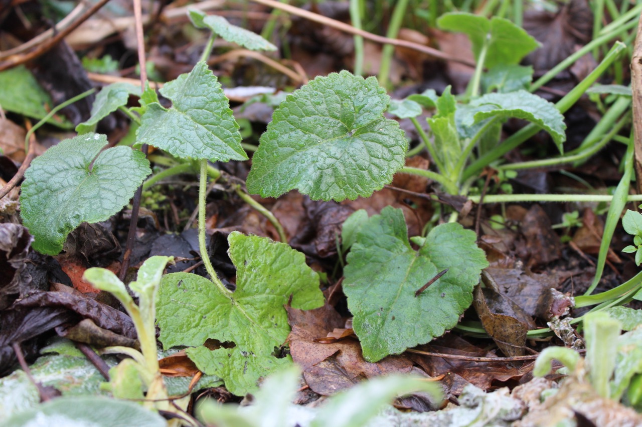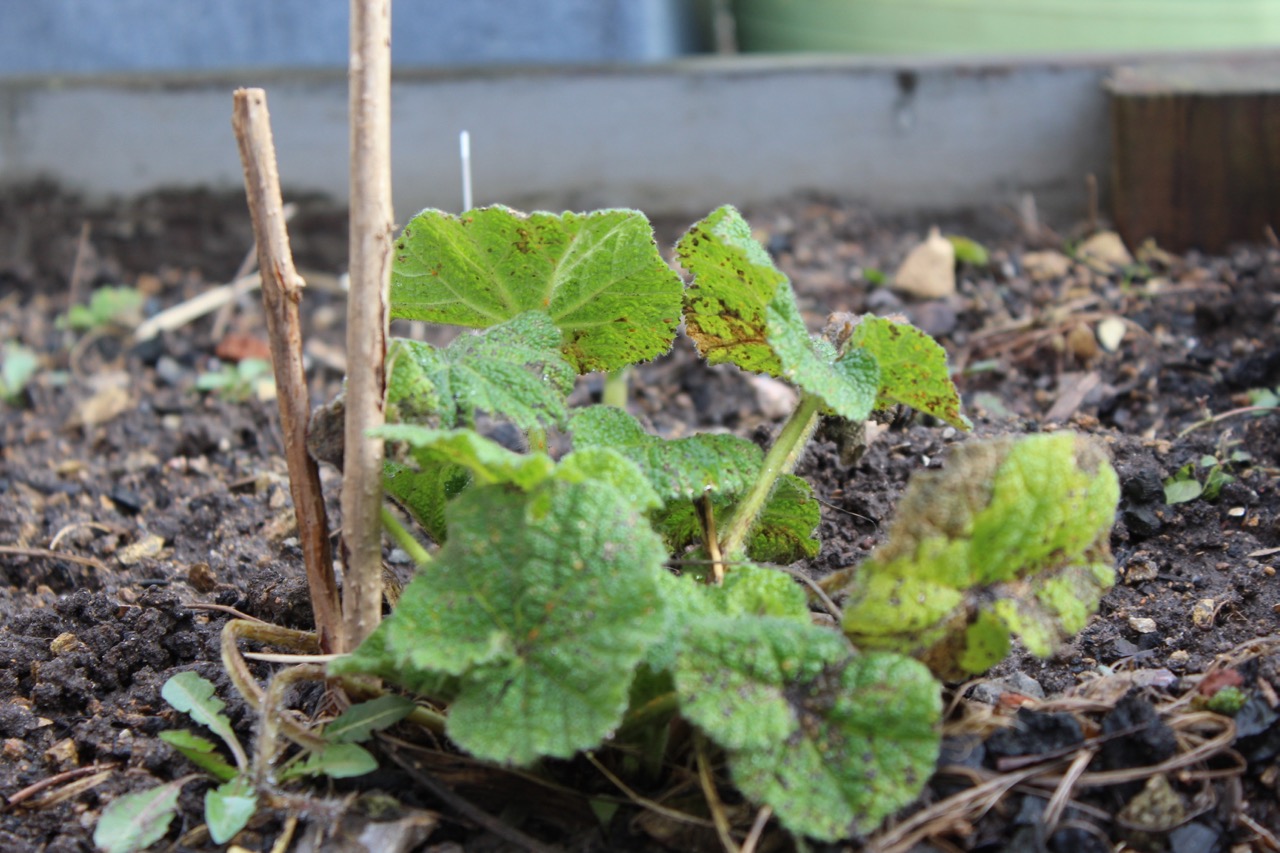Ich staune über die kleinen Stockrosen-Pflänzchen im Kräuter-Kasten, die den Winter unbeschadet überlebt haben.