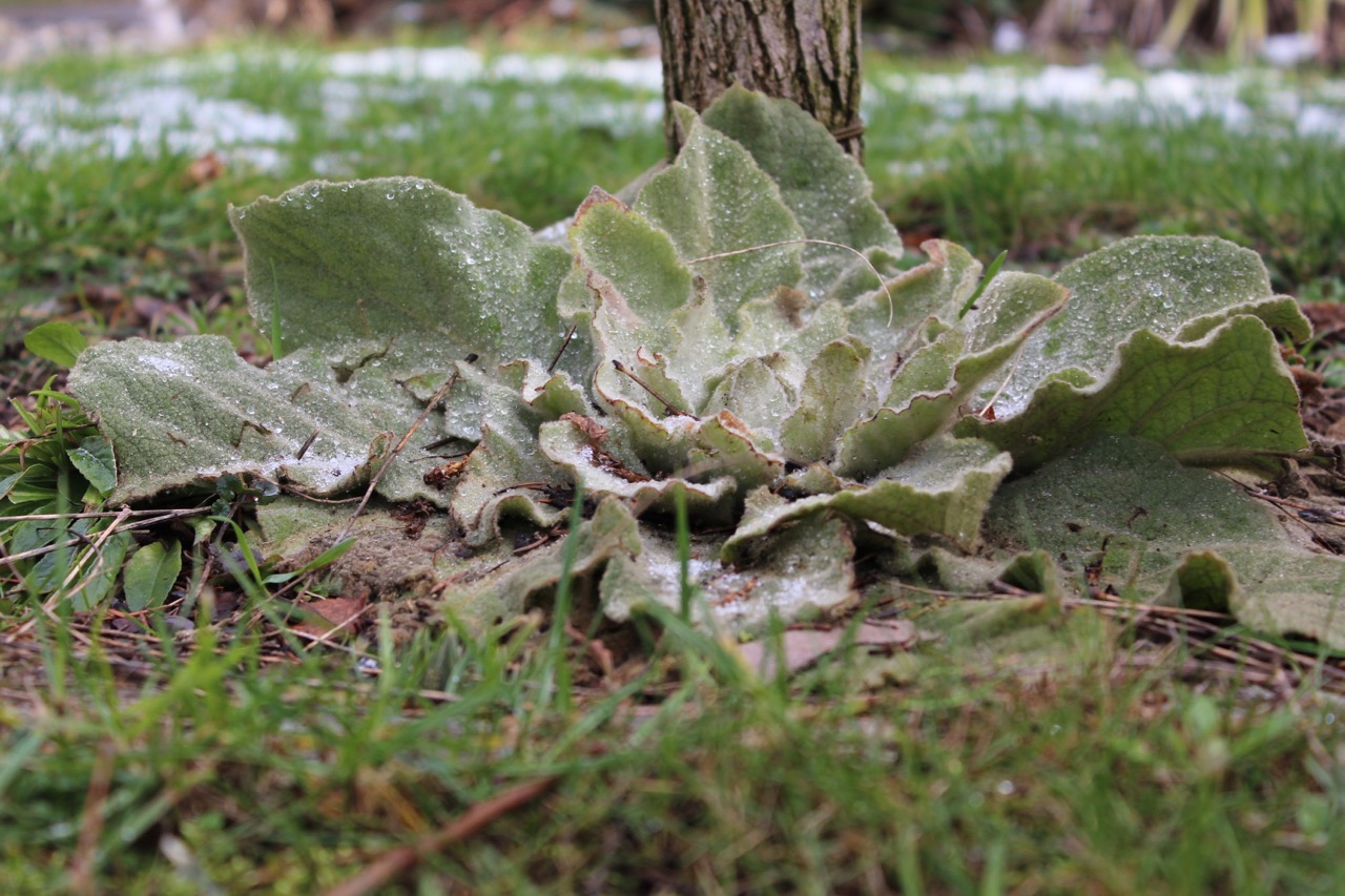 Inzwischen kann ich die Fingerhut-Rosetten von denen der Königskerzen ganz gut unterscheiden. Nur hat sich dieser wunderschöner Königskerzen-Sämling seinen eigenen Platz gesucht. Ich weiß nicht, was ich machen soll…der Platz ist nicht gut, so unter der Kugelrobinie.