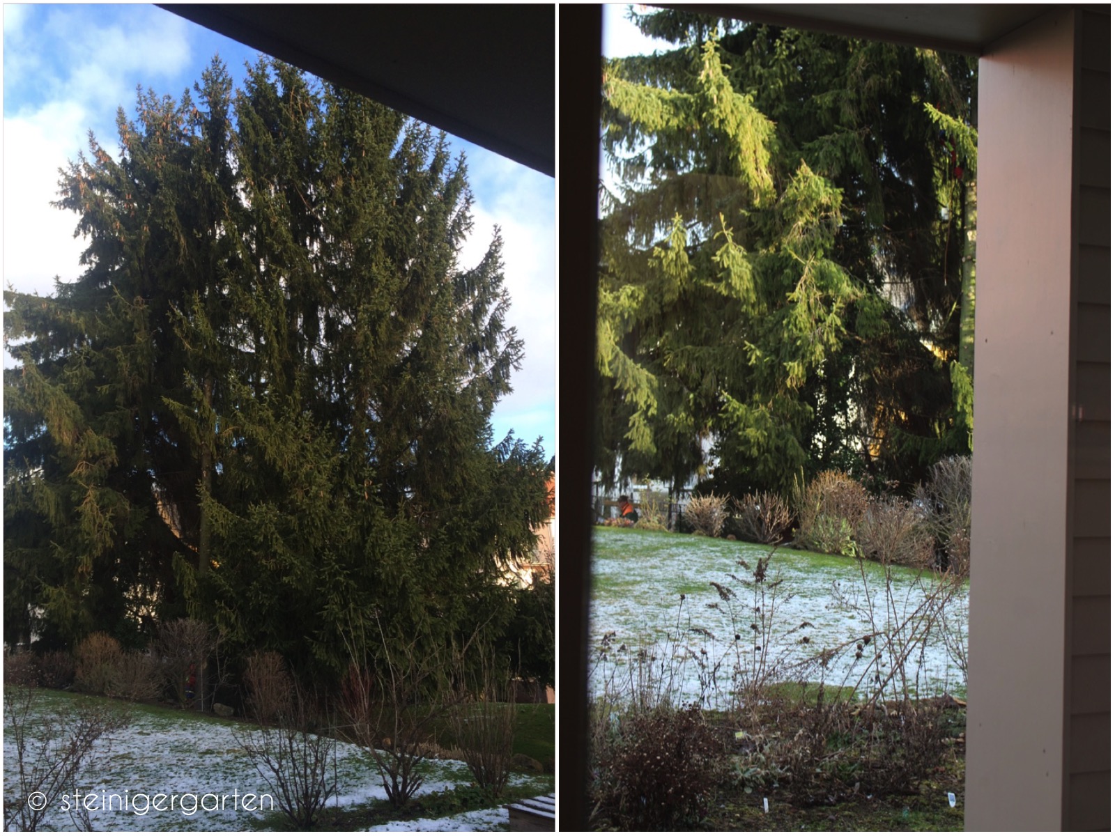 Unser Nachbar hatte letztes Jahr schon davon gesprochen, dass ihm die Fichten am Ende seines Grundstücks Angst machen. Inzwischen haben wir einige Stürme hinter uns gebracht und ich vermute, er hat jedes mal mitgelitten, ob die Bäume dem Ansturm gewachsen sind.