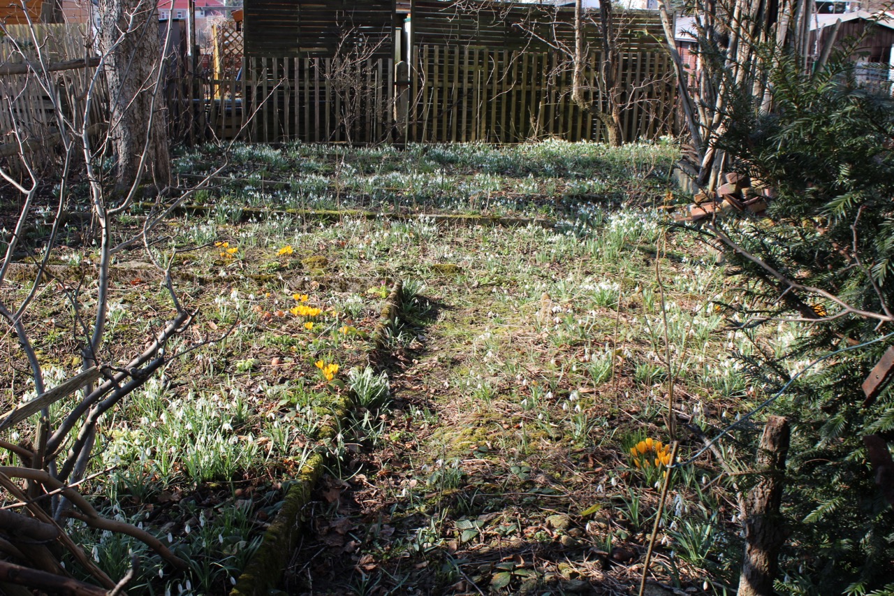 Wirklich, ein Schneeglöckchen-Paradies. Was für ein schöner Garten.