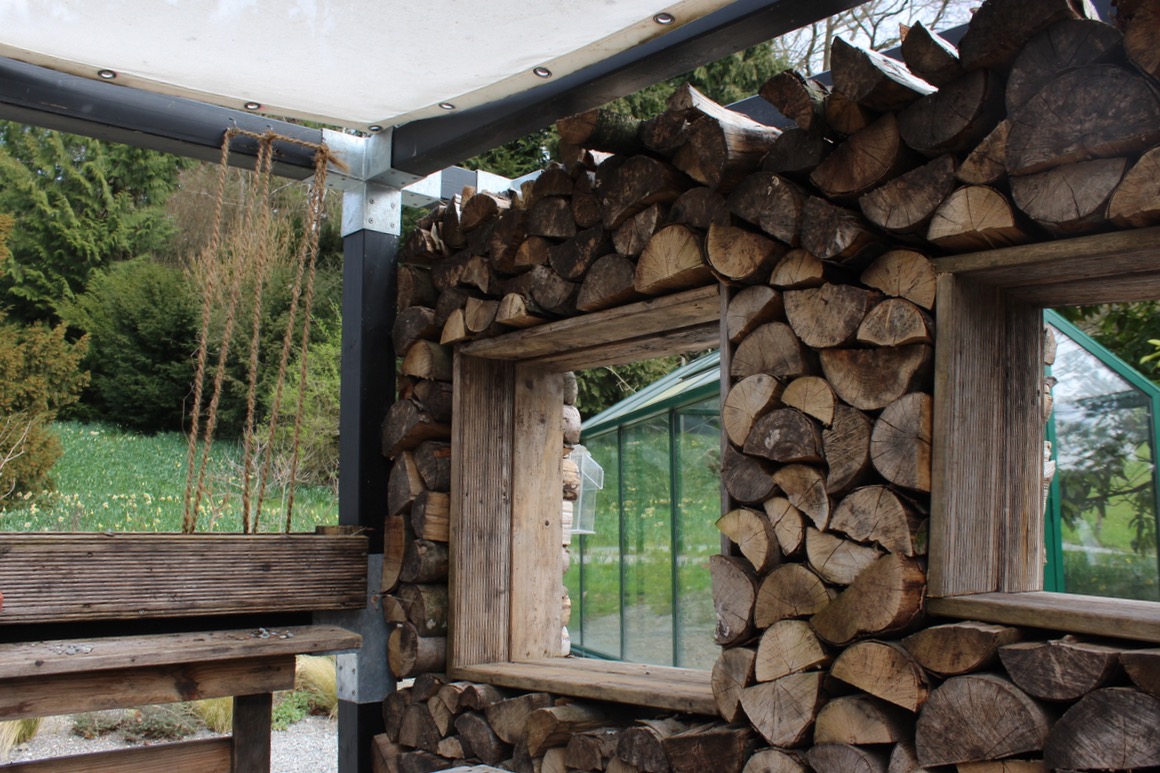 Ist sicher Geschmacksache. Aber ich finde die Idee, Holz, wie Kaminholz aufzustapeln und als Sichtschutz zu verwenden, einfach genial.