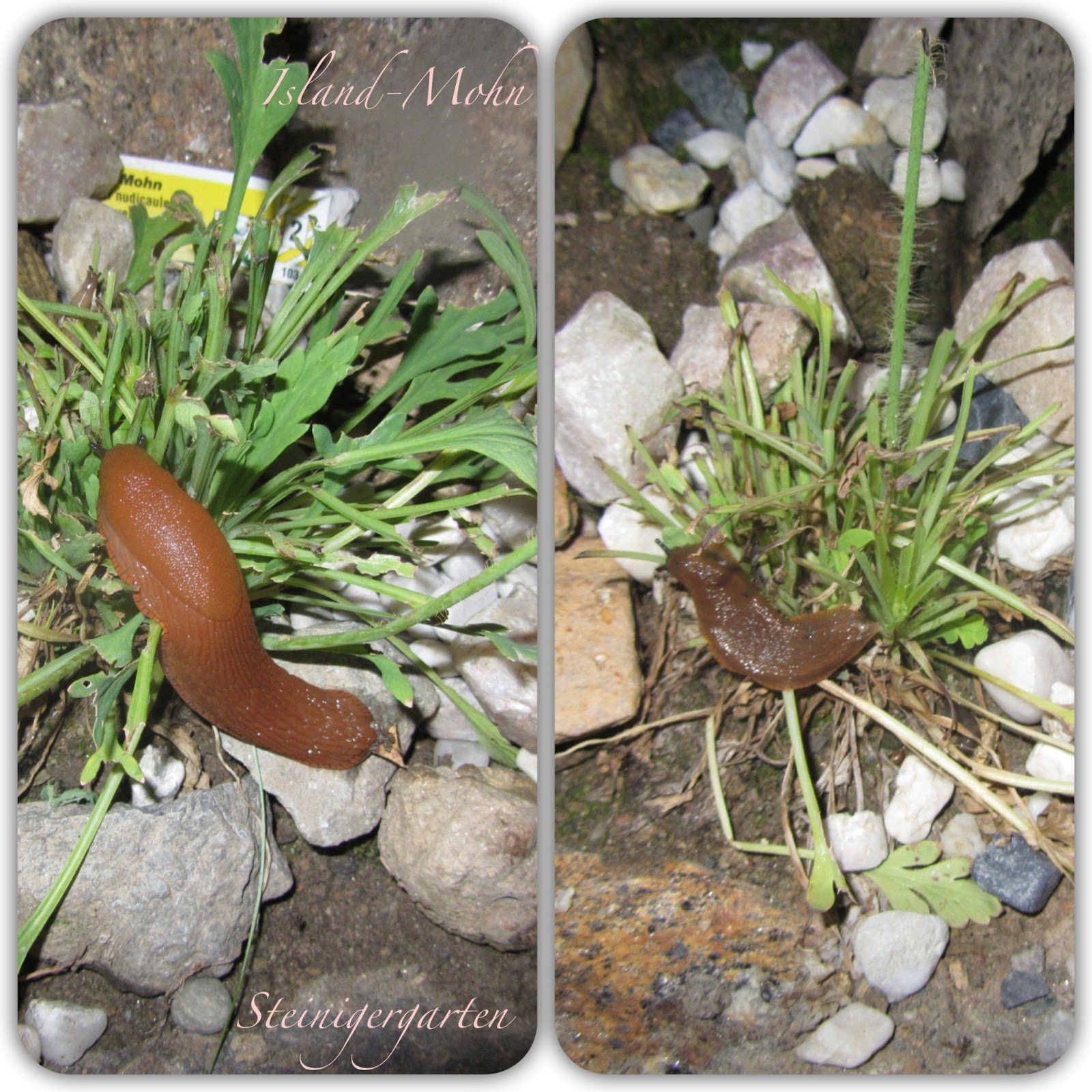Leider gibt es ja nicht nur nützliche Tiere im Garten. Mein ärgster Feind ist die spanische Wegschnecke. Obwohl ich schon viele Gegenmaßnahmen, wie Schneckenzaun und Schneckenkragen oder Schneckenkorn einsetzte, bleibt mir mir der eine oder andere Verlust nicht erspart.