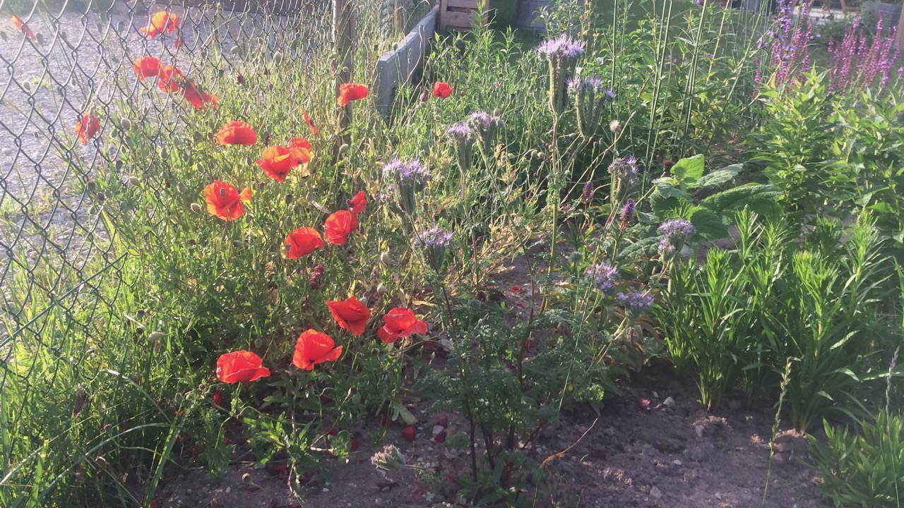 Der Klatschmohn Papaver rhoeas, der sich wahrscheinlich an einer Stelle auch ins Beet gemogelt hat, ist dieses Jahr Blume des Jahres 2017.