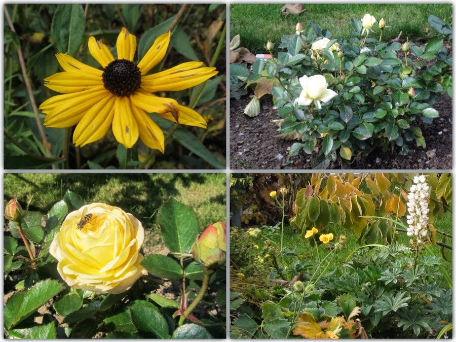 Manche Rosen sind ganz hübsch, der Zierapfel hat auch ein bisschen gelbes Laub, aber die Fernwirkung hält sich doch eher in Grenzen. Zum Glück hängen ja noch die gelben Äpfel dran, allerdings werden die ersten schon wieder braun.