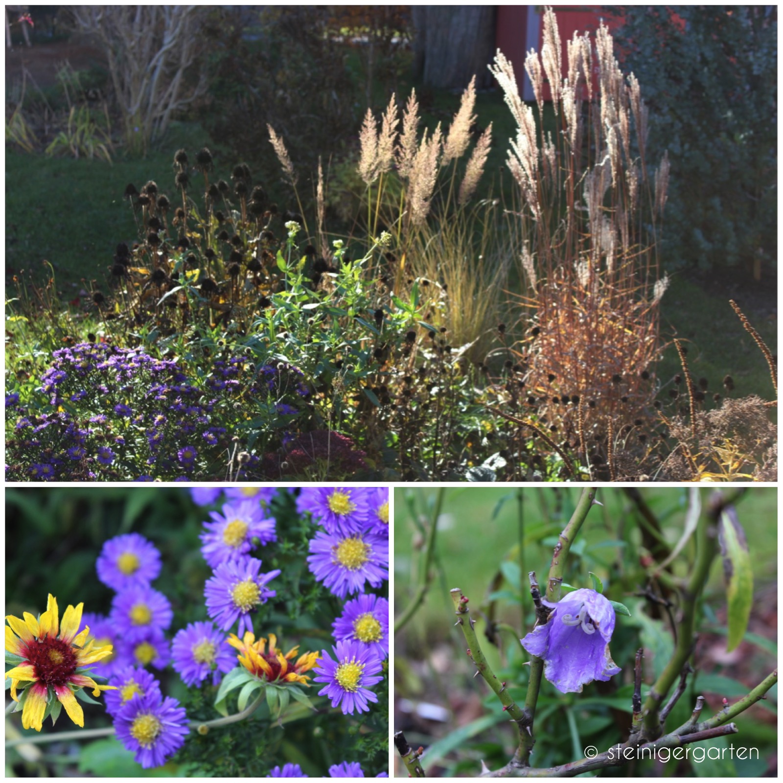 Im Nachbarbeet Gräser mit Astern