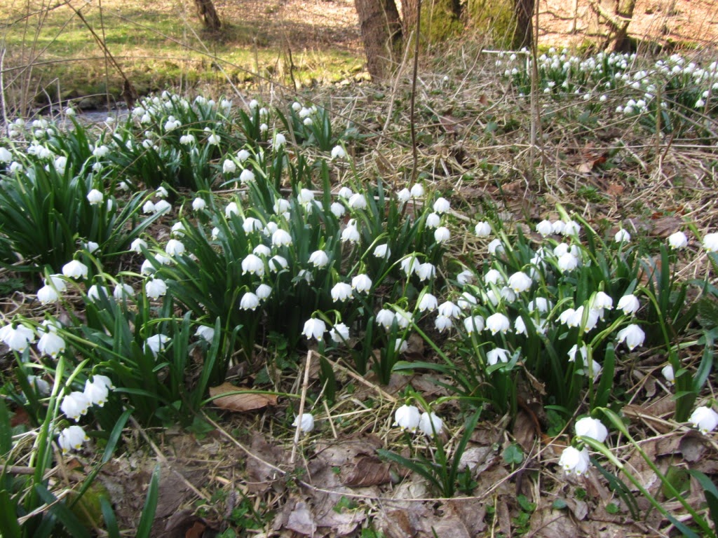 Die heutigen Fotos kommen von einer Frühlingswanderung durch das Obere Polenztal in der Sächsischen Schweiz, als das Wetter letzte Woche so herrlich war. Dort blühen im Moment die Märzenbecher (Leucojum vernum L./ Frühlingsknotenblume), die sich auf den Wiesen entlang der Polenz ausgebreitet haben.