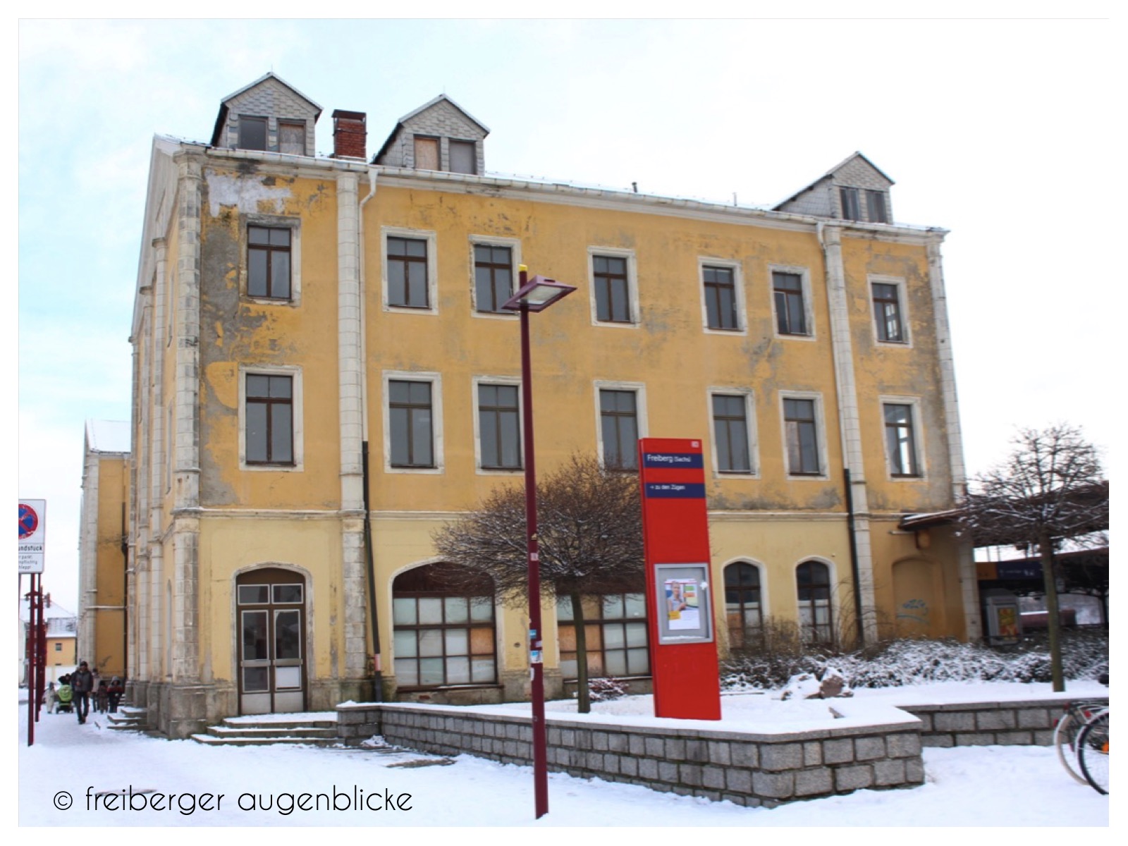 Jaaaa, so ein toller Bahnhof, schon ein paar mal dort per Zug angekommen (aus Leipzig) und weggefahren (ins Erzgebirge…). Es wäre toll, wenn da wieder noch was Ansehnlicheres draus würde. Da hatte ich auch mal ein Foto fürs Bilder-Pingpong gemacht. Freiberg ist da eine Fundgrube ;-). Und trotz aller Schandflecke macht das Bahnhofsgebäude noch einen respektablen Eindruck (und es gibt dort sehr nette Fahrkartenverkäuferinnen). Lieben Gruß Ghislana
