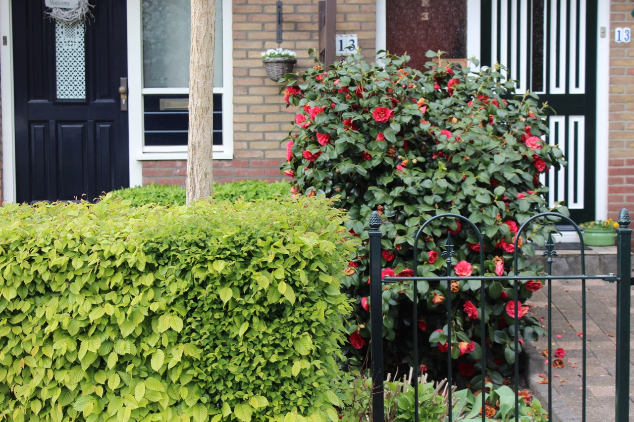Die Vorgärten in Holland sind oft sehr schön gestaltet. Im April blühten mehrfach riesige Kamelienbüsche, die hier offenbar winterhart sind.