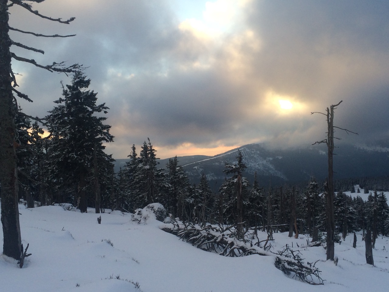 Wir sind ins Riesengebirge gefahren, weil hier in der Gegend kaum Schnee lag und wir doch so gerne mit Skiern durch den Wald fahren.